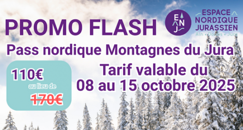 - une prise en charge de 55€ sur le Pass saison Massif du Jura Adulte Promo FLASH (110€) : pour les jeunes de 16 à 21 ans, résidant sur l'une des 32 communes de la CCLMHD.