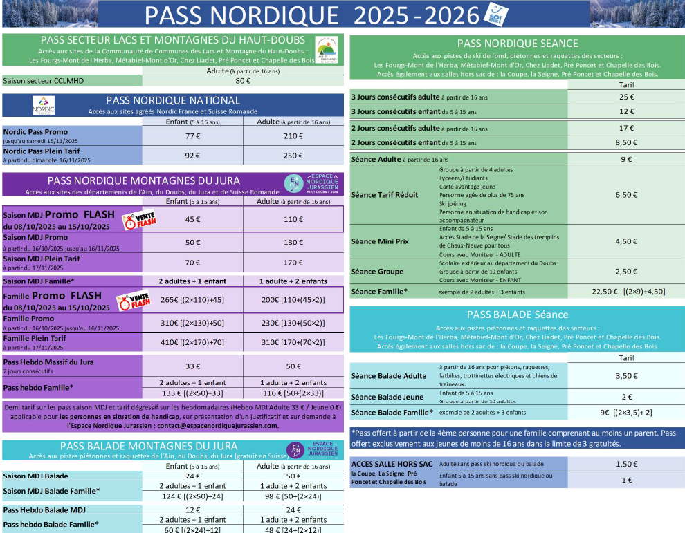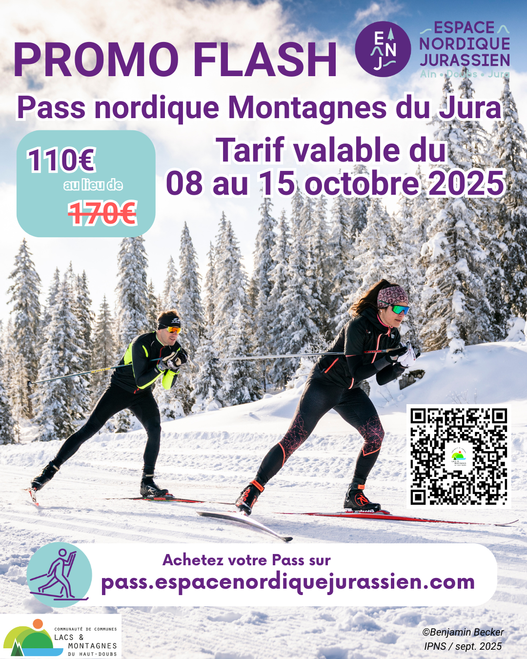 - une prise en charge de 25€ sur le Pass Saison Massif du Jura Jeune Promo FLASH (50€) : pour les enfants de 5 à 15 ans, résidant sur l'une des 32 communes de la CCLMHD.